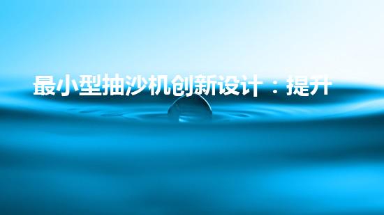 最小型抽沙機創新設計:提升效率的抽沙設備如何改變產業格局?